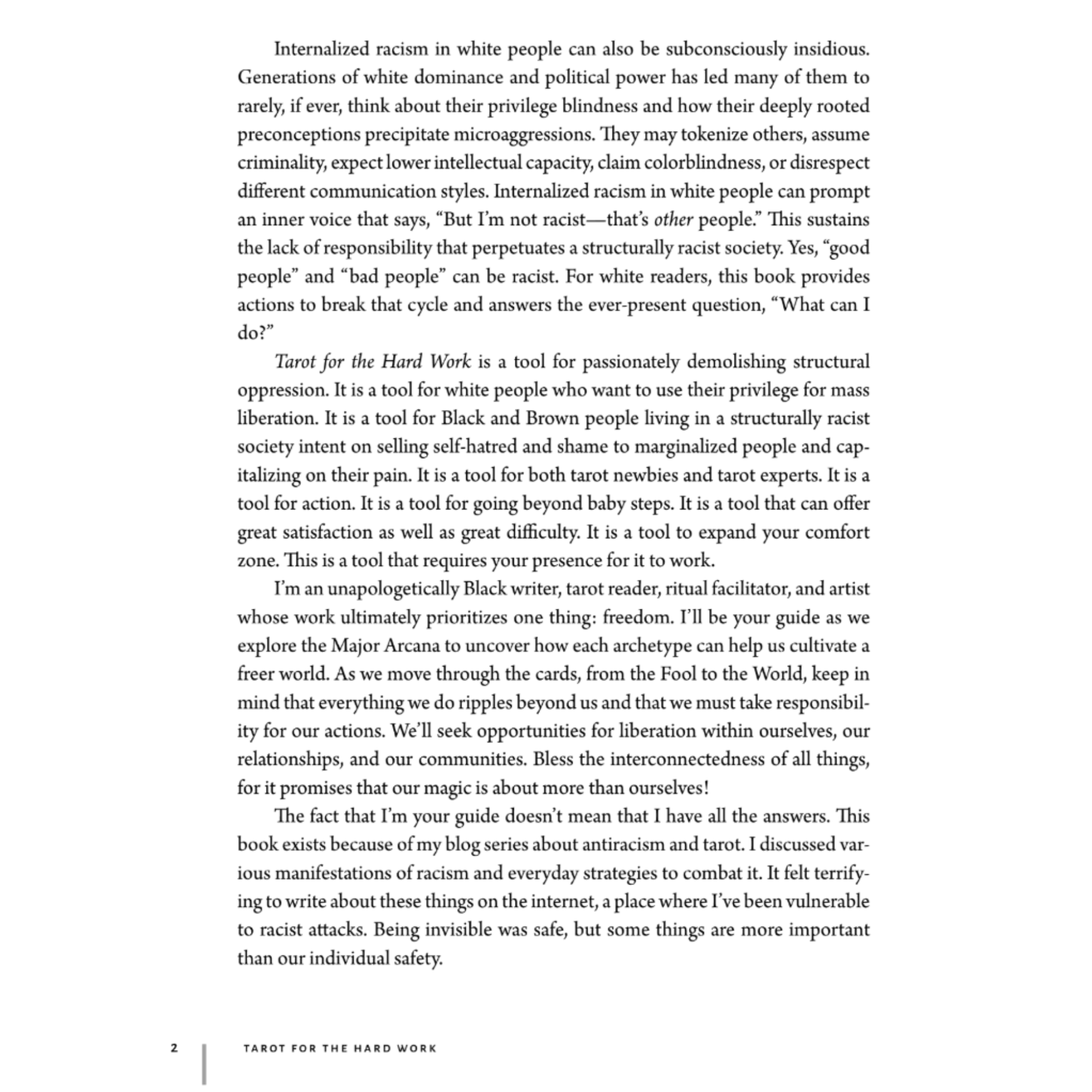 Tarot for the Hard Work is a provocative exploration of the twenty-two cards of the Major Arcana, re-envisioning these archetypes as beacons that illuminate the various ways racism takes root both in ourselves and in the world. Author Maria Minnis, with compassion and wisdom, shows us how these insights can be turned into self-awareness, self-love, and positive social action.