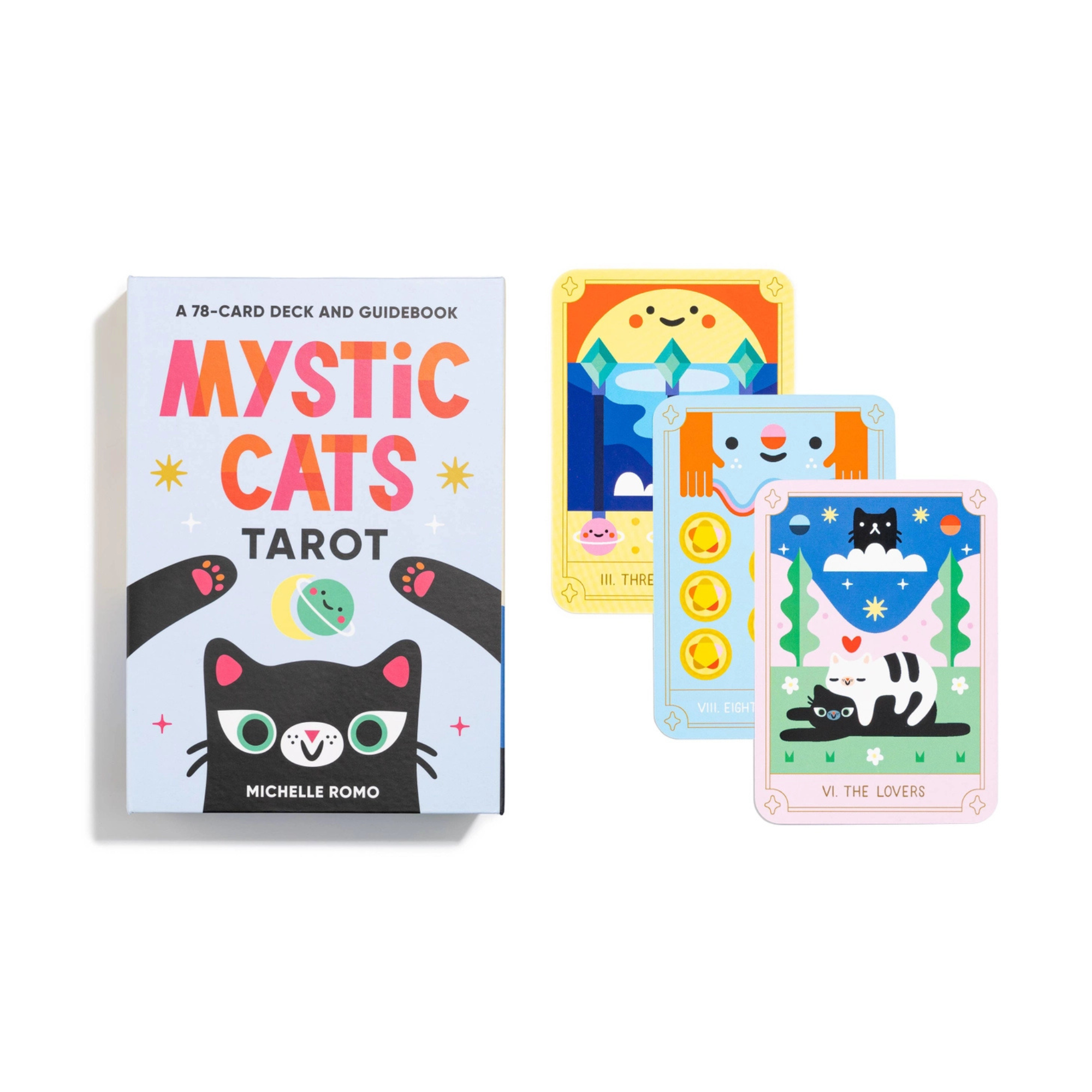 From illustrator and designer Michelle Romo comes a deck that's as magical as it is adorable. Mystic Cats Tarot swaps traditional imagery for playful kitties, frogs, rainbows, and plenty of charm—making every reading feel fun, lighthearted, and a little bit magical. Whether you're brand new to tarot or have years of experience, these kawaii-inspired cards offer a fresh and joyful way to explore your intuition. Perfect for anyone who loves cute decks, it's a whimsical addition to any practice—fun for kids, adults, and cat lovers alike.